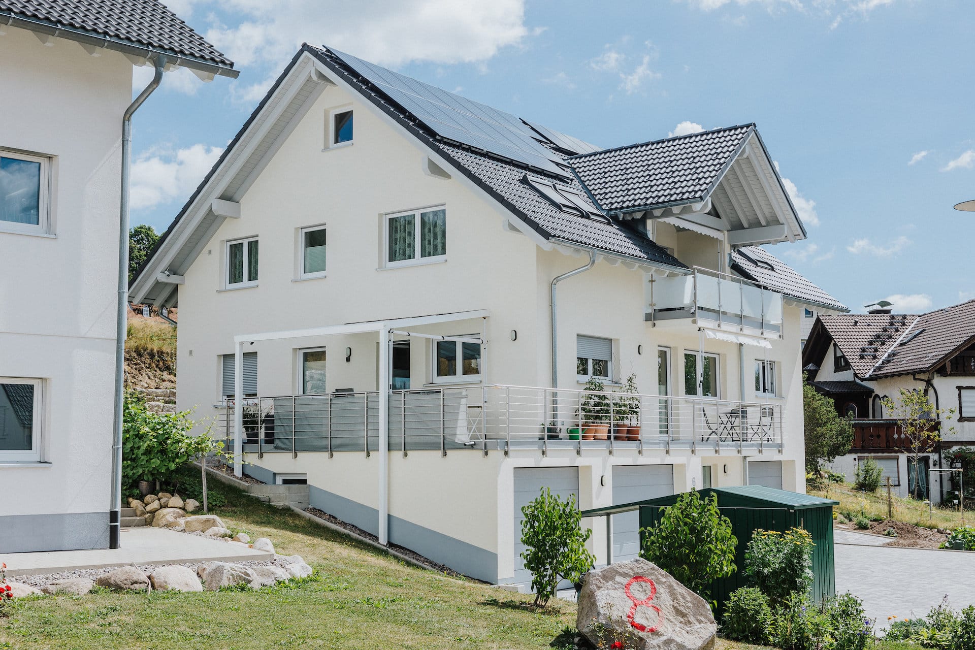 Das schöne Zweifamilienhaus im Neubaugebiet von Häusern bietet viel Platz für die Bauherren. Das Haus wurde exakt auf die Bedürfnisse der Bauherrengemeinschaft geplant.