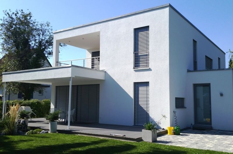 Das moderne Holzhaus in einer ruhigen zentrumsnahen Lage in Jestetten bietet für die Bauherrschaft ein Ort der Entspannung vom stressigen Alltag. Das Haus wurde exakt auf die Kundenwünsche geplant und umgesetzt. Das Projekt umfasste 193 qm. Da Schauinsland Haus in der Planungsphase kostenfrei Individualisierungen vornimmt, konnten auch alle Wünsche der Familie erfüllt werden. Die Bauarbeiten gingen zügig voran. Bohrte sich der sprichwörtliche Spaten mit dem Gießen der Bodenplatte im Juni 2013 in den Boden, zog die Bauherrschaft bereits im Januar 2014 ein. Die Bauherrschaft wusste genau was sie wollten und wie das Haus einmal aussehen sollte, haben aber einen hohen Wert auf individuelle Beratung und Planung gelegt. Insbesondere der Faktor Energieeffizienz und eine moderne Gestaltung war für die Bauherrschaft sehr wichtig. Daher haben wir in allen Räumen eine Fußbodenheizung installiert. Dies ist zum einen eine effiziente Heizmöglichkeit und zum anderen kommt es den Kundenwunsch nach, den Raum bestmöglich zu nutzen. Mit Außenwänden aus ökologischen Holzständerwänden und eine Gutex Putzfassade erreicht das moderne Holzhaus spielend die Vorgaben der Energieeinsparverordnung. Ein persönliches Highlight der Bauherrschaft ist der Balkon im Dachgeschoss. Über den Wohnbereich kann Familie Müller die schöne und atmosphärische Terrasse erreichen. Bei schönem Wetter können sich die Bauherren auf der gemütlichen Terrasse entspannen. Ein moderner Wohlfühlort für die ganze Familie wurde somit umgesetzt.